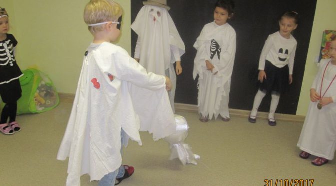 W Misiach dzisiaj zagościły duszki. Nasze dzieciaczki były nie do poznania. Było wiele zabaw z chustą animacyjną i nie tylko. Główną atrakcją było Misiowe kino: podczas seansu bajeczki „Casper przyjazny duszek” zajadaliśmy duszkowy przysmak, czyli popcorn 🙂 Na koniec dzieci wykonały duszki z papierowych talerzy i bibuły. To był naprawdę fajny dzień. Zapraszamy do Albumu.