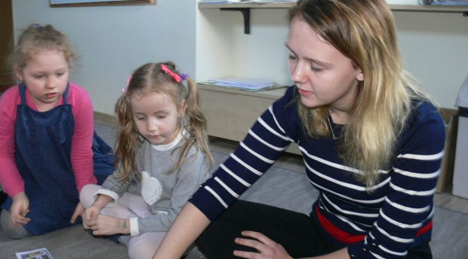 Nasza nowa wolontariuszka z zapałem przystąpiła do asystowania w zajęciach angielskiego, a także samodzielnie powtarzała z dziećmi liczenie do 20. Przygotowała grę w liczbowe bingo, która zafascynowała dzieci:) A na tablicy interaktywnej, dzieci uwagę przyciągnęło liczbowe wyburzanie: