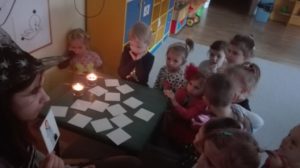 Kotki  przeniosły się także w magiczny świat wróżb i zabaw andrzejkowych. Oprócz dobrej zabawy przy muzyce, wróżyliśmy swoją przyszłość i laliśmy wosk . Następnie z figur woskowych zorganizowaliśmy sobie teatrzyk cieni. Ten magiczny dzień był okazją do zapoznania się z tradycją andrzejkową oraz integracji grupy 🙂