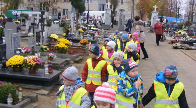 DSCF0747W Dzień Zaduszny dzieci z grupy „Tygryski” wraz z Panią Agnieszką i Teresą odwiedziły pobliski cmentarz. Celem naszej wycieczki było zapalenie zniczy i chwila zadumy nad opuszczonymi grobami. Rozmawialiśmy o szacunku dla zmarłych i o odpowiednim zachowaniu się w takim szczególnym miejscu, jakim jest cmentarz. Nasza wizyta odbyła się w rzadko obserwowanej u dzieci atmosferze powagi i zamyślenia… Zapraszamy do Albumu.