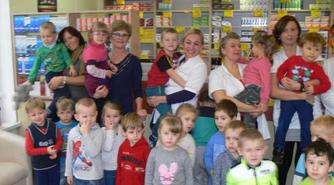 P1110511Dziś nasze przedszkolaki wybrały się na wycieczkę do apteki. Celem wycieczki było poznanie pracy aptekarza wyglądu i wyposażenia apteki oraz asortymentu leków. Pani farmaceutka opowiedziała dzieciom o swojej pracy, pokazała jakie lekarstwa oraz witaminy można w niej kupić. Wytłumaczyła, co to jest recepta i jak ją można zrealizować. Dzieci miały okazję obejrzeć różne preparaty lecznicze, kosmetyki i witaminy. Mogliśmy także zrobić swoją własną maść na zranienia ;-)Dzięki takiej wizycie przedszkolaki wiedzą, co można w aptece kupić, jak walczyć z chorobą i dbać o zdrowie. Na zakończenie wizyty w aptece dzieci otrzymały śniadaniówki 😉 Zapraszamy do Albumu.