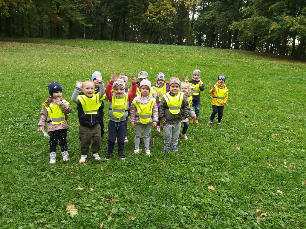 Dnia 4 października Biedronki, wykorzystując piękną pogodę i uroki jesieni, udały się do parku na wycieczkę. Wyjście na wycieczkę poprzedziła rozmowa ,,Jak zachowujemy się w parku” – dzieci dzieliły się swoją wiedzą, w jaki sposób należy dbać o środowisko przyrodnicze. Przedszkolaki nie zapomniały również o przestrzeganiu zasad bezpieczeństwa podczas przechodzenia przez ulicę. Park odkrył przed nami swoje piękno: podziwialiśmy jesienne barwy, rosnące krzewy i drzewa, słuchaliśmy odgłosów przyrody. Bacznie przyglądaliśmy się przyrodzie: korze drzew, liściom, rozmawialiśmy o zwierzętach i ptakach żyjących w parku. Był też czas na bieganie i zabawy. Najwięcej radości sprawiło baraszkowanie wśród miękkich, pachnących liści. Zadowoleni, z kieszeniami pełnymi żołędzi i bukietami kolorowych liści wróciliśmy do naszego przedszkola. Już nie możemy doczekać się następnej wycieczki… Zapraszamy do Albumu.