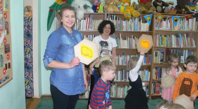 P1210175W piątek 20 maja Biedronki wybrały się do biblioteki na zajęcia „O chłopcu, który wpadł do książki”. Panie bibliotekarki przywitały dzieci ciekawym opowiadaniem. Dzieci ze zdziwieniem słuchały, jak można „wpaść” do książki i przeżyć fantastyczne przygody. Sami mieliśmy ochotę złożyć swoją książkę i ją zilustrować. Udało nam się to przy pomocy pań bibliotekarek. Pokazały nam, w jaki sposób z kartki stworzyć książkę. W rytm muzyki bawiliśmy się w „łapanie książki”. Dużo było zabawy i uśmiechu – bardzo nam się podobało. Zapraszamy do Albumu.