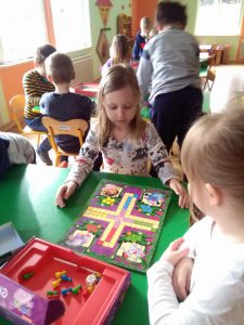 • Pobudzanie dziecięcej wyobraźni i pomysłowości podczas projektowania i tworzenia gry planszowej (planszy, instrukcji oraz pionków).