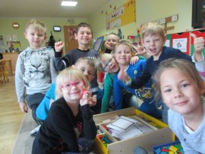 No cóż, nie da się ukryć, że Sówki już wiedzą co to jest „shopping”:) Na zajęciach angielskiego, dzięki naszej nowej piosence, dzieci poznały nazwy sklepów (po amerykańsku:) – toy store (sklep z zabawkami), supermarket (Ha! tak samo mówimy po polsku, tylko z Mrs Magdą ta wymowa jest całkiem inna:), bakery (piekarnia), candy store (sklep z cukierkami – mniam!), cake shop (sklep z ciastami i tortami – delicious!) i book store (księgarnia). Śpiewajmy więc razem: Let’s go shopping! You and me!
