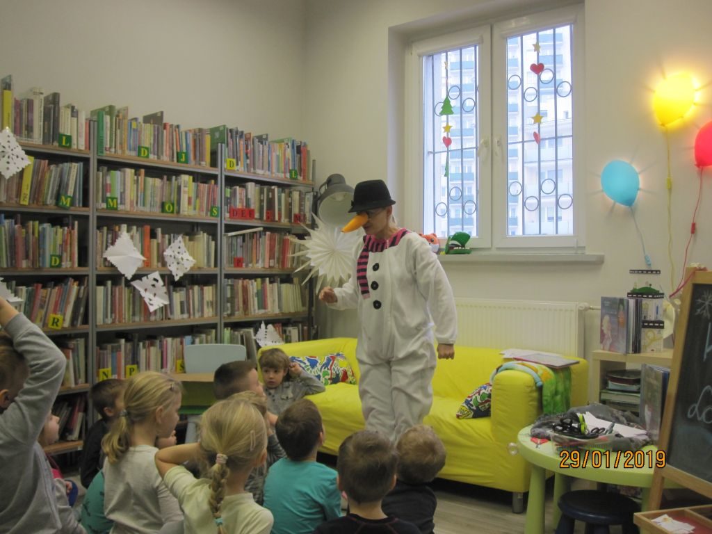 We wtorek Kangurki wybrały się po raz kolejny do biblioteki. Tym razem zajęcia dotyczyły bohaterów ulubionej bajki „Krainy lodu”. Dzieci z ciekawością słuchały książki o przygodach bałwanka Olafa, wycinały z papieru śnieżynki oraz ozdabiały nimi bibliotekę. Improwizowały zimowe sporty oraz śpiewały znane przeboje Elzy i Anny. Zabawa bardzo nam się podobała i już umówiliśmy się na kolejne zajęcia 🙂 Zapraszamy do Albumu.