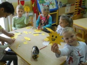 świadczą o tym,że jest on życzliwy. Wiedzieliśmy, że dotyczy to miłych, pomocnych, dobrych ludzi. Ważne jest również stosowanie zwrotów grzecznościowych, które stanowią także kodeks życzliwego przedszkolaka 🙂 Dzieci wykonały także słoneczka, które wręczały sobie nawzajem. Przy tej okazji każdy przedszkolak wypowiadał miłe słowa drugiej osobie. Była to wspaniała nauka życzliwości i koleżeństwa 🙂