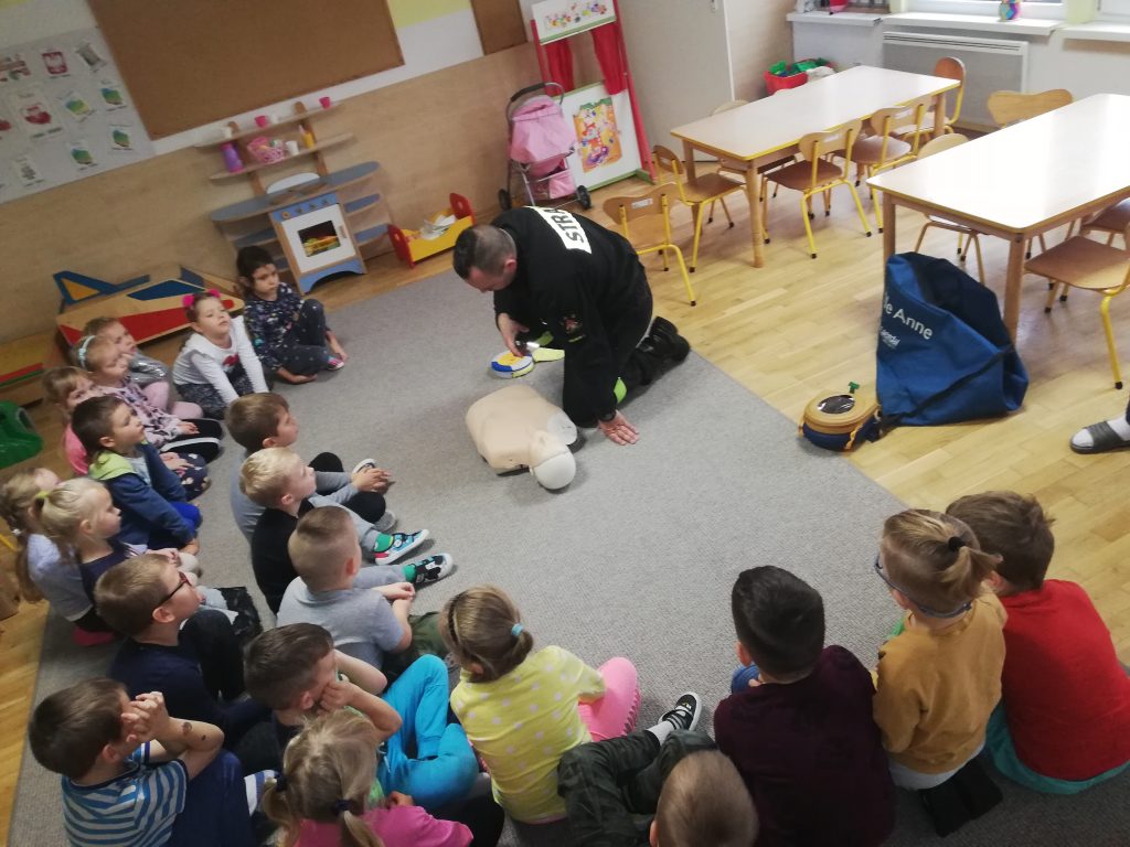 Dnia 13 listopada odwiedził nas wujek Kacpra i opowiedział o swoim zawodzie strażaka. Zademonstrował nam również instrukcje pierwszej pomocy. Dzieci słuchały uważnie, a następnie przeszliśmy do zajęć praktycznych 😁👨🚒 Dziękujemy bardzo za poświęcony nam czas. Zapraszamy do Albumu.