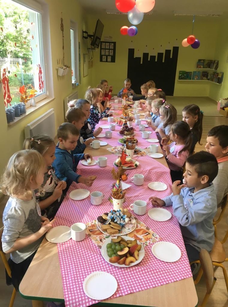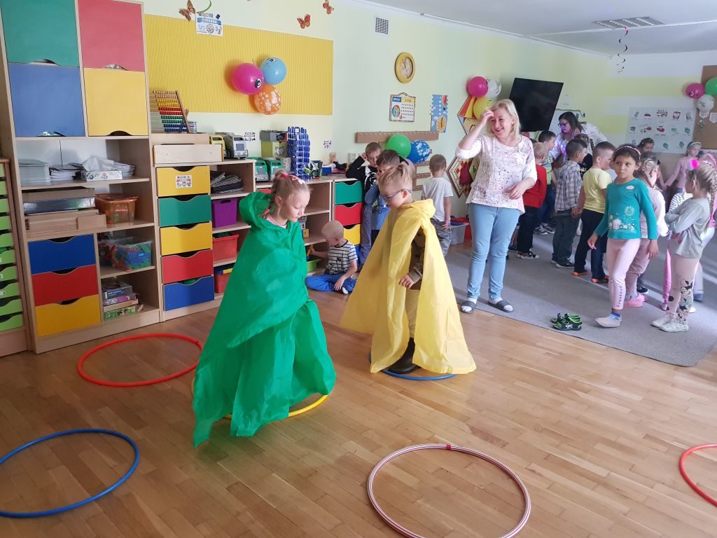 Ach co to był za bal! Panie z grup Tygrysków i Kangurków zorganizowały bal z okazji Dnia Przedszkolaka. Były wesołe tańce, zabawy smakowe, dzieci miały okazje poskakać po kałużach w kaloszach i płaszczach dla dorosłych oraz poczuć, jak to jest być dorosłym: dziewczynki chodziły szpileczkach a chłopcy w męskich butach i krawatach. Śmiech i wesołe okrzyki słychać było z daleka 😉