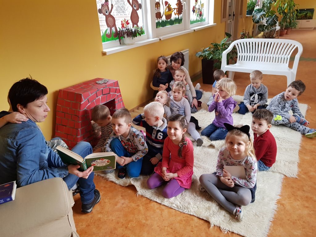W środę Kangurki zaprosiły do kącika książek Panią Teresę – babcię Matyldy. Na powitanie Pani Teresa przeczytała nam wiersze Ewy Szelburg- Zarembiny. Później wysłuchaliśmy bajki o „Lisie i Kruku”. Była to okazja do rozmowy i wyjaśnienia morału tej bajki. Kangurki dobrze zrozumiały treść utworu i chętnie odpowiadały na zadawane im pytania. Na koniec Pani Teresa zaproponowała dzieciom do przeczytania kilka tytułów. Kangurki wybrały opowieść o „Trzech świnkach”, której z zaciekawieniem słuchały. Dziękujemy Babci Matyldy za poświęcony czas i zachęcamy nasze rodziny do wspólnego czytania 🙂 Zapraszamy do Albumu.
