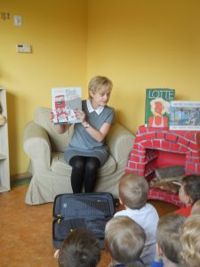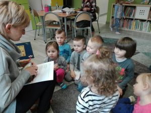 Biblioteki Dziecięcej w Tczewie 🙂 A dziś Biblioteka w osobie Pani Katarzyny Piernickiej zawitała do naszego Przedszkola 🙂 Pani Kasia przywiozła ze sobą magiczny kuferek pełen książek. Czytaliśmy o piratce Lotcie i Słoniu, który jeździł autobusem. Nie zabrakło dreszczyków emocji przy lekturze „Tam, gdzie żyją dzikie stwory” 🙂 Bardzo serdecznie dziękujemy za wizytę w naszym kąciku książek i zachęcamy do częstszych odwiedzin, także naszych rodziców i absolwentów 🙂 Zapraszamy do Albumu.