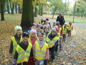 brakowało promieni słońca i ciepłych podmuchów wiatru. Każdy z przedszkolaków, ubrany w kamizelkę odblaskową, dzielnie maszerował do wyznaczonego celu. Oprócz zbierania „darów” przyniesionych przez Panią Jesień, pospacerowaliśmy sobie po parku. Kolorowe liście, kasztany i żołędzie po powrocie do przedszkola ozdobiły kącik przyrodniczy 🙂 Zapraszamy do Albumu.