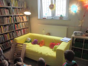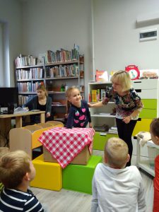 Jesienne warsztaty w Bibliotece pt. „Zmysłowa jesień” były świetną okazją do bliższego zapoznania się darami jesiennymi. Dzieci losowały w magicznej skrzyni dary jesienne, które za pomocą dotyku musiały rozpoznawać. Używaliśmy również zmysłu węchu do rozpoznania zapachów z jesiennej spiżarni. Następnie obejrzeliśmy teatrzyk kukiełkowy pt. ,,Na straganie”. Na zakończenie naszej jesiennej przygody p. Kasia, kierownik biblioteki, przeczytała nam książkę o tajemniczej kropce, która za dotknięciem palca zmieniała kolor 🙂 Zapraszamy do Albumu.