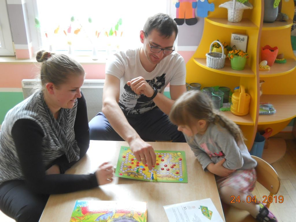W środę 24 kwietnia w grupie Tygrysków odbyły się rodzinne rozgrywki w gry planszowe i układaniu puzzli. Mieliśmy możliwość wspólnie z rodzicami, przedszkolakami oraz ich najbliższymi zagrać w różne gry m.in. „5 sekund”, „Gorący ziemniak”, „Grzybobranie”, „Chińczyk”, ” Warcaby” oraz w inne gry planszowe. Chętnie sięgaliśmy również po puzzle, w których mogliśmy przebierać. Bardzo miło spędziliśmy wspólnie czas 🙂 Zapraszamy do Albumu.
