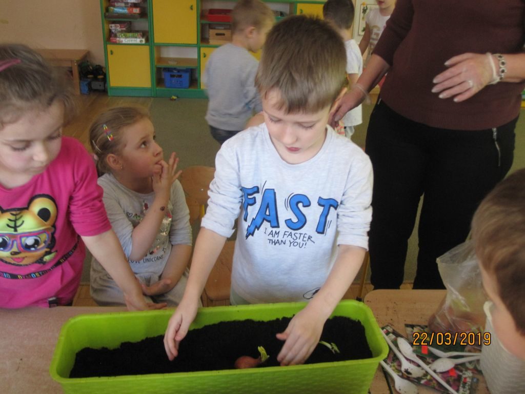 22 marca (piątek) Tygryski zamieniły się w małych ogrodników. Na początku przygotowaliśmy wszystkie niezbędne rzeczy: doniczki, łopatkę, ziemię, konewkę i oczywiście nasiona. Potem zabraliśmy się do pracy. Posialiśmy owies, rzeżuchę, lobelię, smagliczkę oraz koperek. Zasadziliśmy także cebulę i fasolę. Teraz będziemy codziennie obserwować naszą przedszkolną hodowlę. To był bardzo pracowity dzień 🙂 Zapraszamy do Albumu.