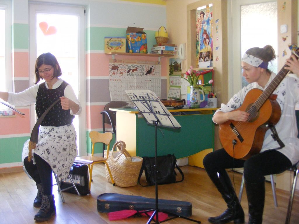 Dziś Pani Muzyka opowiedziała nam historię o dwóch zamczyskach, w których rządziły Hałas i Cisza. W historii o księciu i księżniczce wpleciony były opowieści o instrumentach strunowych: skrzypcach i gitarze 🙂 Słuchaliśmy pięknych utworów solo i w duecie. Dziękujemy za wspaniałe wrażenia 🙂 Ciekawe, czy dzieci zapamiętają, do czego potrzebne są włosy z końskiego ogona 🙂 Zapraszamy do Albumu.