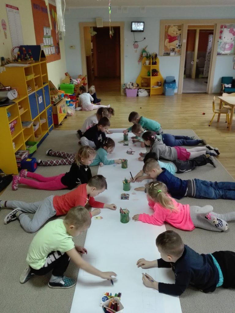 W połowie marca Tygryski i Biedronki obchodziły Dzień Matematyki. Tego dnia przenieśliśmy się w do krainy Figurolandii. Na początku wysłuchaliśmy opowiadania o krainie Figurolandii. Wszystko było tam w kształcie figur geometrycznych: kwadratu, koła, trójkąta bądź prostokąta. Pewnego dnia zostało rzucone zaklęcie na krainę i wszystko zostało zamienione. Można było temu zaradzić, wykonując przygotowane zadania. Pierwszym zadaniem było przesłanie uśmiechu do pani Alicji, potem szukaliśmy przedmiotów w sali w danym kształcie. Następnie wykonaliśmy różne ćwiczenia gimnastyczne oraz układaliśmy różne kształty przedmiotów z figur, między innymi domy, lody, budy, koty, psy, kwiaty. Na koniec na bardzo długiej kartce papieru Tygryski rysowały wszystko z figur geometrycznych, zaś Biedronki odrysowywały je i kolorowały. Bardzo podobał nam się ten dzień🙂 Zapraszamy do Albumu.