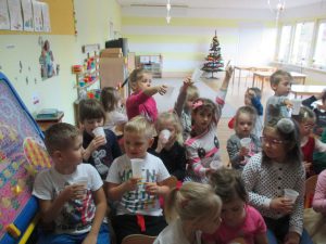 Nadszedł czas aby Kangurki przystroiły choinkę!!! Ozdoby były wyjątkowe 🙂 , ponieważ wykonane przez dzieci i ich bliskich. Nasza choinka jest już gotowa, sala wystrojona, kominek ogrzewa nam sale 😉 rozpoczynamy okres przedświąteczny 🙂 Rozpoczęliśmy go bardzo mile. Dzieci nie tylko wystroiły choinkę, ale również wykonały pyszne i zdrowe soki 🙂 Z jabłek, pomarańczy i mandarynek, pyyyyyycha. Wszystkie dzieci próbowały, nie została ani kropelka. Teraz mamy jeszcze więcej siły na dalsze przygotowania. Zapraszamy do Albumu.