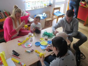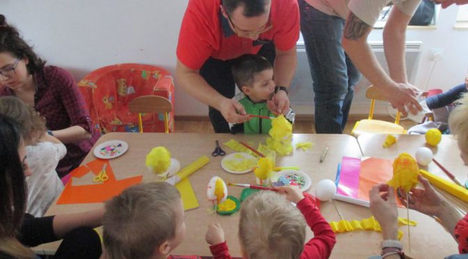 jajek, ale nie od kurki, tylko ze styropianu. Z nich stworzyliśmy piękne dekoracje do naszej sali, aby wprowadzić świąteczny nastrój: kurczaczki oraz kolorowe pisanki z różnych materiałów. To było pracowite, owocne i udane popołudnie 🙂 Dziękujemy wszystkim rodzicom za przybycie na warsztaty oraz wykonanie wraz ze swoimi pociechami przepięknych ozdób wielkanocnych. Zapraszamy do Albumu.