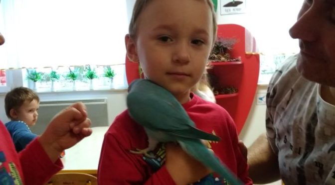 Nasze Przedszkolaki odwiedził wyjątkowy gość – papuga Alex . Dzieci miały okazję uczestniczyć w ciekawym wykładzie o życiu tych ptaków. Dzięki tej wizycie dzieci poznały ich zwyczaje i warunki, w jakich żyją. Bardzo dziękuję Panu Przemkowi za fantastyczny pokaz papug. Zapraszamy do Albumu.