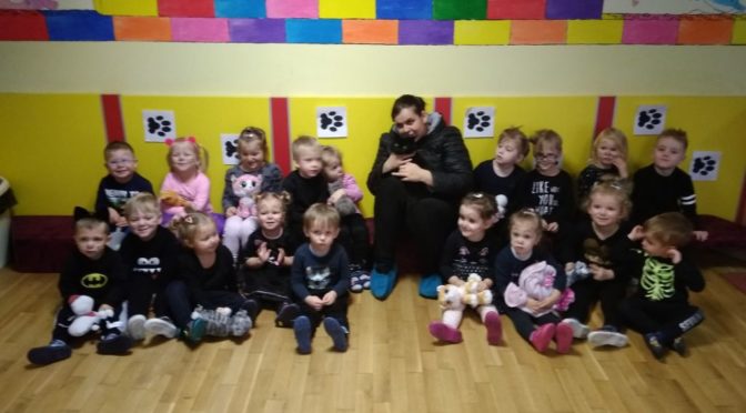 19 listopada w naszej grupie obchodziliśmy Dzień Czarnego Kota. Tego dnia wszystkie dzieci przyszły do przedszkola ubrane na czarno, a na ich buziach pojawiły się kocie wąsy 🙂 Odwiedził nas również główny bohater święta – czarny kocur o imieniu Bonifacy. Opiekunka kotka, mam Filipa z grupy Kotki, opowiedziała nam, jak dbać, karmić i opiekować się tak wspaniałym zwierzątkiem. Dzieci miały okazję dotknąć i pogłaskać kota oraz sprawdzić, jak szybko biega. Nie zabrakło zabaw ruchowo – naśladowczych przy dźwiękach kociej muzyki. Nasz Dzień Kota był pełen radości i dobrej zabawy. Dziękujemy pani Ewie za wizytę z kotem i poznanie kocich zwyczajów oraz za poświęcony czas 🙂 Zapraszamy do Albumu.
