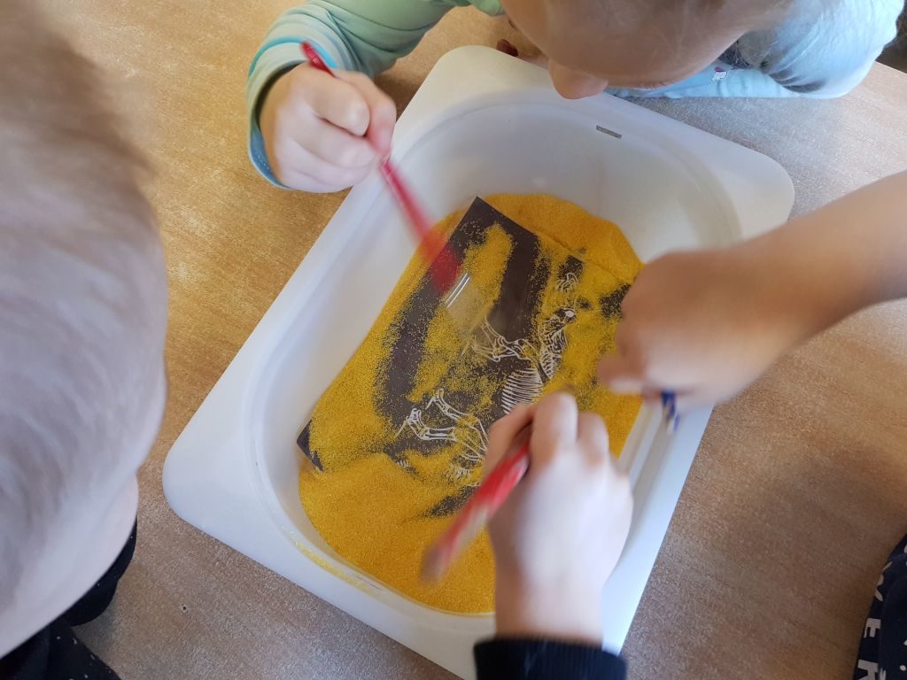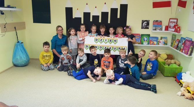 We wtorek dzieci z grupy Misie obchodziły Dzień Dinozaura. Najpierw dzieci poznały nazwy dinozaurów, następnie bawiły się w wykopaliska – dzieci musiały być bardzo ostrożne, więc tak jak paleontolodzy użyły pędzelków 🙂 Mali badacze obserwowali również zamrożone jaja dinozaurów, cierpliwie czekały aż dinozaury się „wyklują”, obserwowały również, co dzieje się z lodem, jeśli posypiemy go solą. Nie mogło również zabraknąć dinozaurowej fotobudki 🙂 To był bardzo ciekawy dzień 🙂 Zapraszamy do Albumu.