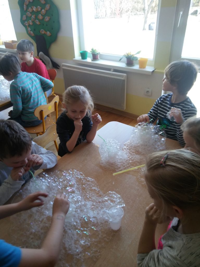 W piątek Kangurki obchodziły Dzień Wody. Z tej okazji dzieci miały okazję poeksperymentować i wziąć udział w zabawach badawczych z wodą. Sprawdzaliśmy rozpuszczalność niektórych produktów w wodzie, takich jak: mąka, kakao, cukier, sól. Udowodniliśmy także, że w słonej wodzie ziemniak nie tonie, tylko unosi się na powierzchni. Jedno z doświadczeń nauczyło nas, że ciężkie przedmioty opadały na dno, a lekkie pływały. Najbardziej podobał się dzieciom eksperyment z sodą i octem wywołującym spektakularny efekt. Na koniec dzieci mogły za pomocą słomki i wody z płynem wykonać wielką pianę. To była ciekawa zabawa połączona z nauką i wyciąganiem wniosków. Zapraszamy do Albumu.