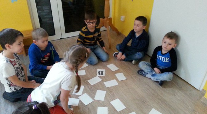 Na ściance angielskiej zawisły ostatnio plakaty z literkami i obrazkami-ilustrują one angielski alfabet wraz ze słówkami zaczynającymi się na daną literkę. Grupa Ekoludków w ramach rozszerzonego programu nauczania języka angielskiego poznaje angielski alfabet oraz dodatkowe słówka zaczynające się na każdą z literek. Dzieci rozpoznają literki z rozsypanki według trudnego, złożonego opisu zawierającego rozmiar, kolor oraz literkę (np. big blue A, small pink E). Wybierając literkę odpowiadającą opisowi karmią naszego literowego potworka (Letter Monster). Grają również w literkowe memory tworząc pary literek i odpowiadających im obrazków. Zapraszamy do Albumu.
