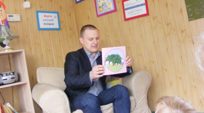 Dziś odwiedził nas Pan Krzysztof Korda, dyrektor Miejskiej Biblioteki Publicznej w Tczewie. W naszym kąciku książki przybliżył dzieciom z grupy Biedronek przygody świnki Peppy, która zamieniła się w Jeżynową Królewnę. Na zakończenie naszego spotkania Pan Krzysztof podarował dzieciom książkę Romana Landowskiego „Baśnie kociewskie”. Dziękujemy i zapraszamy ponownie 😉 , a więcej można zobaczyć w Albumie.