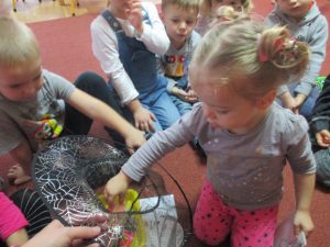 oznaczały różne przepowiednie, np. „czeka Cię miła niespodzianka”, „latem udasz się w wakacyjną podróż” 🙂 Potem wróżyliśmy przyszłe zawody, nie zabrakło lekarzy, strażaków i nauczycieli. Potem pani Alicja za pomocą zaklęcia zamieniła nas w różne zwierzątka. Nie zabrakło również wróżby z butami. Na koniec wróżyliśmy ze słomek, które były podpisane naszymi imionami: te, które się połączyły, przepowiadały przyjaźń na długie lata. To był magiczny dzień?