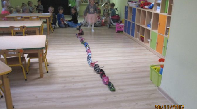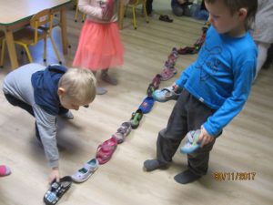mógł się dowiedzieć, co go czeka w niedalekiej przyszłości. Dowiedzieliśmy się, co to są Andrzejki i jakie wiążą się z tym tradycje. Następnie ułożyliśmy ścieżkę z naszych kapci i dowiedzieliśmy się, że nasz kolega Mikołaj pojedzie w daleką podróż 🙂 Na koniec dnia każdy wykonał swój klucz.