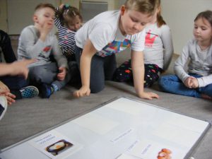 Kangurki. Najpierw dzieci uczyły się wymowy i ćwiczyły umiejętność czytania globalnego nowych słówek i zwrotów (egg, egg shell, egg white, egg yolk, raw egg, hard-boiled egg, soft-boiled egg, fried egg), a potem zabraliśmy się do poznawania właściwości jajek. Jak rozróżnić jajko ugotowane na twardo od surowego? Kto się zgłosi do Mrs Magdy z odpowiedzią, otrzyma słodką nagrodę 🙂 Zapraszamy do albumu.