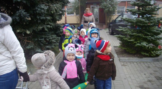 ćwiczą na gimnastyce do piosenki „Jedzie Mikołaj z prezentami”. Poprzez naśladowanie i zabawę dzieci zamieniły się w Mikołaja, który pakuje prezenty, wyrusza w drogę, a potem rozdaje je innym