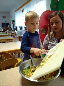 Sezon na pyszne owoce trwa! Nie zapominamy o tym także w naszym przedszkolu. Dlatego też dzieci z grupy Kotki postanowiły zrobić pyszną i zdrową sałatkę owocową. Kiedy wszystko już było gotowe, przystąpiliśmy do krojenia owoców, mieszania i … degustacji. Ach, co to była za uczta 🙂 Zapraszamy do Albumu.