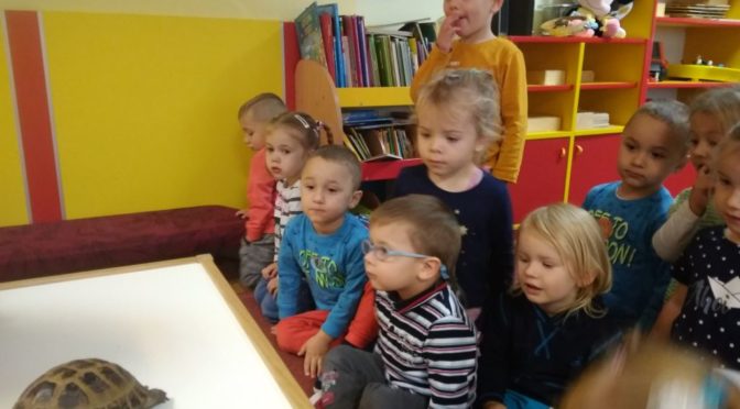 W poniedziałek nasze przedszkolaki odwiedził nietypowy gość – mały żółw. Dzieci miały możliwość poznać to przesympatyczne zwierzątko, dotknąć go, dowiedzieć się, w jaki sposób należy się nim opiekować, czym karmić, jak dbać o jego higienę oraz w jaki sposób zapewnić mu bezpieczeństwo. Bardzo dziękujemy p. Marlenie za edukacje przyrodniczą 🙂 Zapraszamy do Albumu.