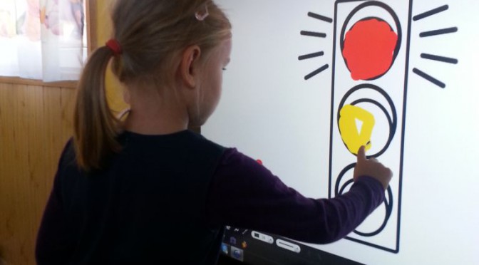 Grupa krasnali wie już dokładnie, jak należy się zachować przechodząc przez jezdnię oraz co oznaczają poszczególne światła i znaki. Znają rymowankę o światłach (Traffic lights : Ed on the top, Green below, red says stop! Green says go!). Wykonały też z Miss Beatą przejścia dla pieszych (zebra crossing). Krasnale uczyły się również piosenki o sygnalizatorze 🙂 Zapraszamy do Albumu i do śpiewania:
