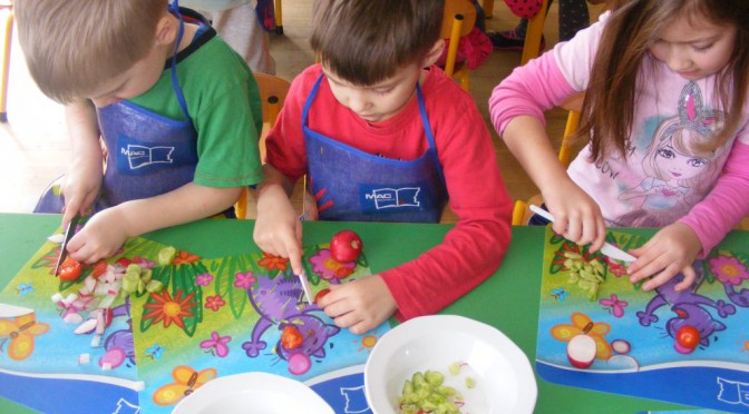 Podczas zajęć Krasnale wspólnie z Miss Magdą, Panią Mariolą i Beatką oraz Adie robiły twarożek z warzywami. Wyzwanie było duże. Dzieci zamieniły się w kucharzy, sprawnie i z zachowaniem zasad bezpieczeństwa i higieny kroiły warzywa. Później oczywiście odbyła się degustacja. Zapraszamy do Albumu.
