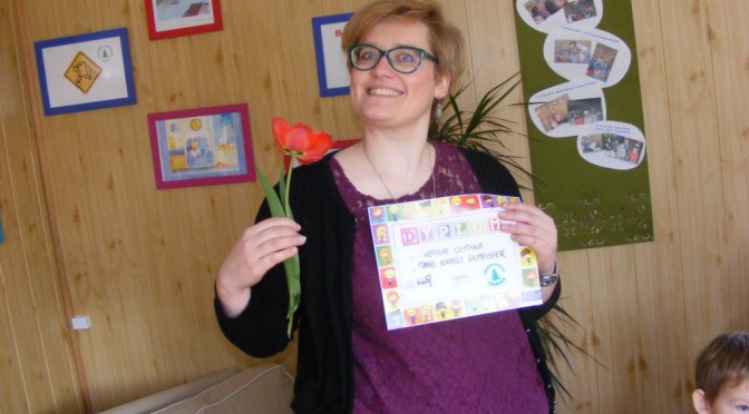 DSCF104030 kwietnia odwiedziła nas Pani Kamila, która jest etnologiem w Fabryce Sztuk. W naszym kąciku książek opowiedziała nam o swoim zawodzie, a następnie przybliżyła dzieciom twórczość ludową. Dziękujemy za wspólne czytanie i zapraszamy ponownie. Pani Kamila otrzymała od nas wiosennego kwiatka oraz Dyplom 😉 Zapraszamy też do Albumu.