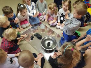 4 grudnia Misie obchodziły Dzień Górnika. Przedszkolaki z wielkim zainteresowaniem wysłuchały opowieści o ciężkiej i niebezpiecznej pracy górników w kopalni. Ustaliliśmy właściwości węgla: węgiel jest twardy, czarny i mocno brudzi – to akurat dzieciom się bardzo podobało 😉 Nie rozpuszcza się w wodzie i ma różne kształty. Wykonaliśmy również pracę plastyczną przy użyciu węgla drzewnego 🙂 Zapraszamy do Albumu.