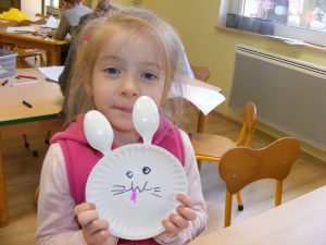 W poniedziałek Misiaki miały przyjemność pobawić się z naszą wolontariuszką Abbey. Tym razem wykonywaliśmy pracę plastyczna. Robiliśmy wielkanocnego zajaczka – easter bunny i poznaliśmy wiele innych słówek po angielsku związanych z Wielkanocą.