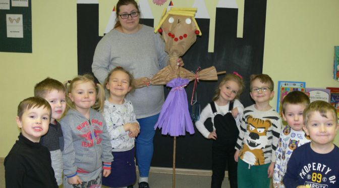 A po powrocie do przedszkola wykonaliśmy ekologiczną Marzannę, którą jutro zabierzemy na powitanie wiosny na Palcu Hallera. Dzieci ochoczo zabrały się do pracy i stworzyły piękna kukiełkę z szarego papieru, plastikowych korków, rolek od papieru toaletowego, rzodkiewek oraz pałeczek kukurydzianych. Zapraszamy do Albumu.