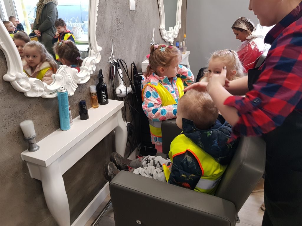 Misie odwiedziły salon fryzjerski  „Magic hair care”. Dowiedziały się, jak wygląda praca fryzjera oraz co potrzebuje on do swojej pracy. Dzieci mogły również usiąść na fotelu fryzjerskim, a Pani fryzjerka uczesała ochotników 🙂 Dziękujemy za miłe przyjęcie w salonie i przybliżenie dzieciom zawodu fryzjera. Zapraszamy do Albumu.