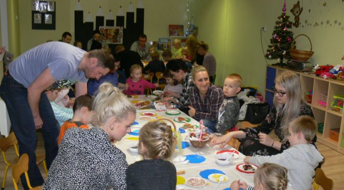 czujnym okiem naszych pań kuchareczek pierniki nabierały koloru, piekąc się w piekarniku. Tak pięknie upieczone dnia 21 grudnia dzieci dekorowały wspólnie z rodzicami na piernikowych warsztatach. Pomysły były różnorodne, zaangażowanie bardzo duże. Oczywiście wszystkie dzieciaki w końcu doczekały się konsumpcji 🙂 Dziękujemy za wspólnie spędzony czas. Życzymy wszystkim Wesołych Świąt i zapraszamy do Albumu.