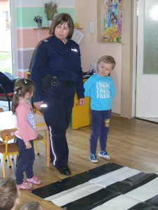 W dniu 17.11. (piątek) grupę Tygrysków i Biedronek odwiedził specjalny gość. Pani Policjantka – mama Filipa, opowiedziała nam o swoim zawodzie. Mówiła nam m. in. jak powinniśmy się zachować w sytuacji, kiedy nieznajomy proponuje nam słodycze. Następnie dowiedzieliśmy się, jak bezpieczne można się poruszać po drodze jako pieszy lub rowerzysta.