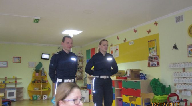 Opowiedzieli dzieciom jak należy zachować się na drodze oraz omówiliśmy wspólnie mundur policyjny 🙂 Dzieci otrzymały opaski odblaskowe oraz kamizelki na nasze przedszkolne spacery. Dziękujemy za bezpieczne prezenty 🙂 To była bardzo miła wizyta. Zapraszamy do Albumu.
