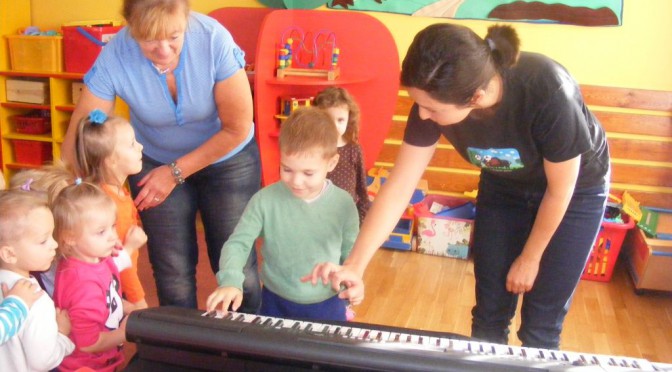 DSCF0159Dziś przedszkolaki uczestniczyły po raz pierwszy w tym roku szkolnym w zajęciach rytmicznych. Pani Marysia wprowadziła dzieci w świat muzyki przy akompaniamencie pianina (elektronicznego 😉