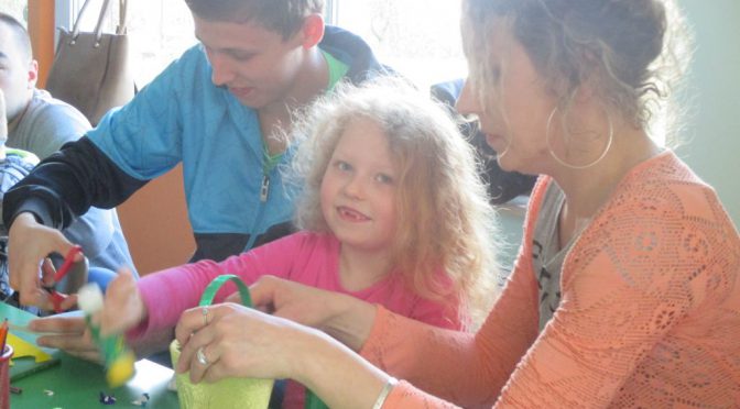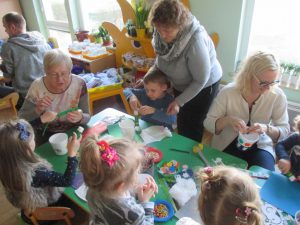 rodzinne kreatywne warsztaty. Tematem przewodnim były oczywiście ozdoby wielkanocne. Na stołach czekały na wszystkich baranki, zajączki, jajeczka i kurczaczki oraz wszelkiego rodzaju materiały do dekorowania, malowania, kolorowania i … dobrej zabawy:) Dzieci i rodzice z zapałem przystąpili do pracy, a ich głównym zadaniem było stworzenie kolorowych koszyczków wielkanocnych. Bardzo dziękujemy za udział w warsztatach, dzięki którym dzieci mogły puścić wodze