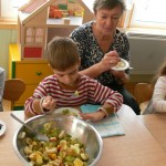 Dziś robiliśmy sałatkę owocową. Trochę było rozgardiaszu 😉 z niesfornymi owocami i kłopotów z krojeniem, ale efekty były przepyszne. Zapraszamy do Albumu