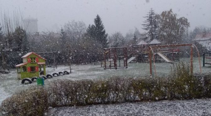 Z nieba zaczął lecieć prawdziwy puch. Czyżby ktoś rozpruł jakąś poduszkę? W środę „Sówki” postanowiły wybrać się na jesienny spacer, a tu niespodzianka – padał śnieg. Dzieci bardzo się ucieszyły, że przyszła już zima 😉 Radości było bez liku, ale niestety nie udało nam się ulepić bałwana, ponieważ mimo wszystko śniegu jest jeszcze za mało. Ale nie poddajemy się – jeżeli tylko pojawi się go więcej, wówczas i bałwan ozdobi nasz ogród przedszkolny 🙂 Zapraszamy do Albumu.