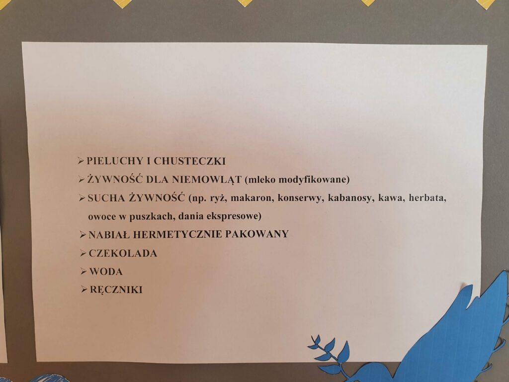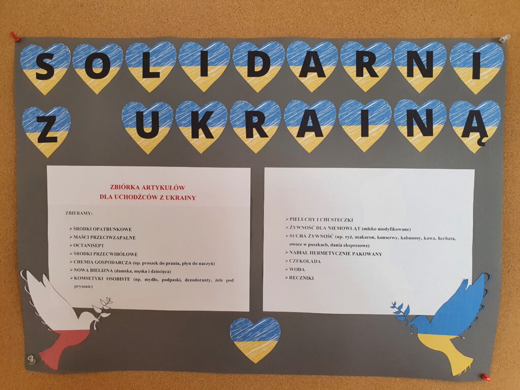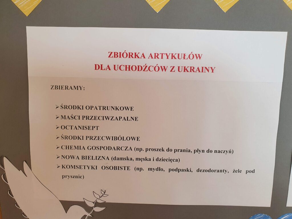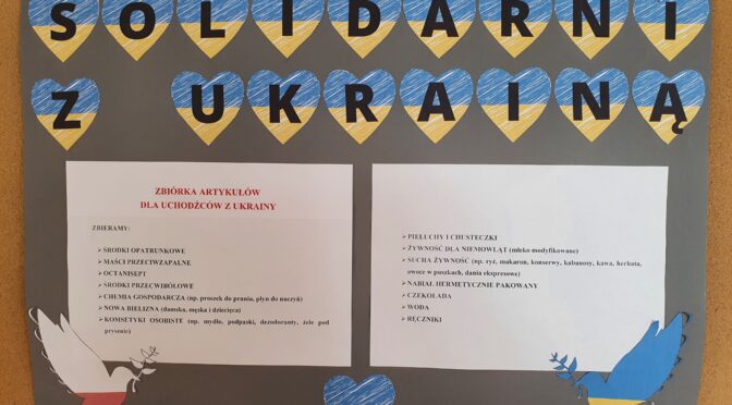 Szanowni Państwo, zwracamy się z ogromną prośbą o wsparcie naszych sąsiadów z Ukrainy, którzy zmagają się z bandyckim napadem na swój kraj. Organizujemy zbiórkę artykułów pierwszej potrzeby dla uchodźców coraz liczniej przybywających do Polski. Najpilniej potrzebne są: